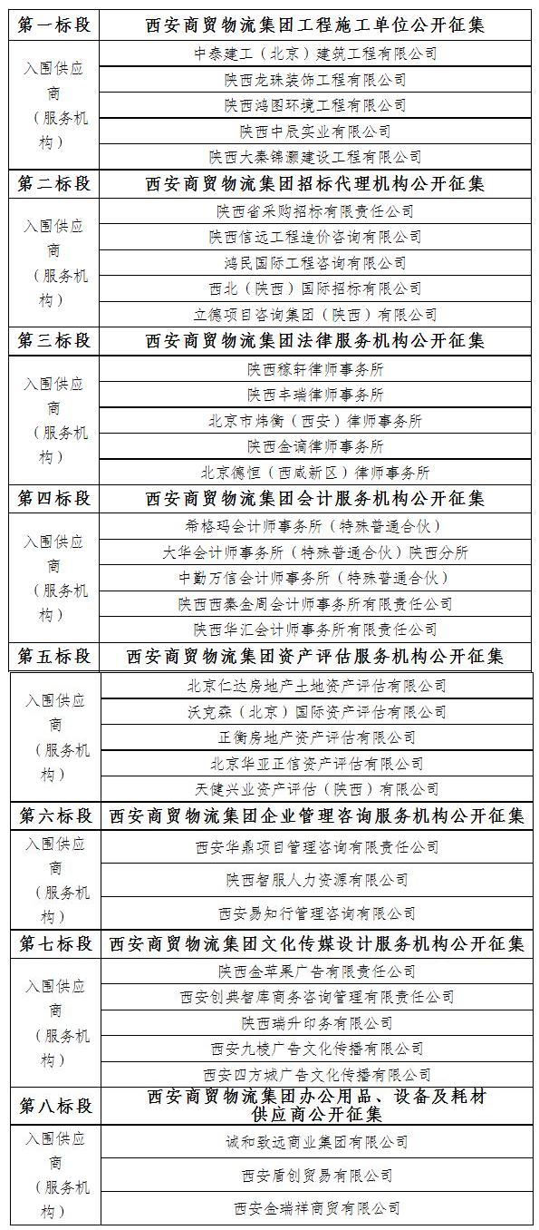 請(qǐng)各入圍供應(yīng)商(服務(wù)機(jī)構(gòu))于2022年11月15日至2022年11月17日持單位介紹信或法人授權(quán)委托書(授權(quán)代表)到西安商貿(mào)物流集團(tuán)企劃發(fā)展部(前海金融人壽中心1號(hào)樓2201室)領(lǐng)取入圍通知書。