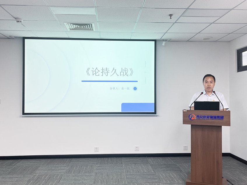 黨群部袁一航則帶來了《論持久戰(zhàn)》的分享:“這本書揭示了抗日戰(zhàn)爭的發(fā)展規(guī)律,啟發(fā)我們將有限的資源集中運用,達成戰(zhàn)略目標,為市場競爭提供借鑒。”