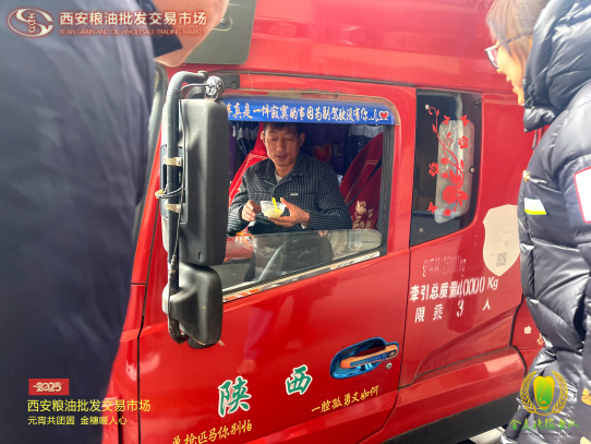 “金麥穗”服務隊還特別為外地大貨車司機送上了暖心湯圓。這些大貨車司機常年奔波在外,很難和家人一起過節(jié)。當他們收到這份特別的節(jié)禮時,眼中滿是感動。一位司機師傅說:“雖然不能回家,但在這里感受到了家的溫暖,更感受到了千年古都西安人民的熱情,謝謝糧油市場對我們的關心。”